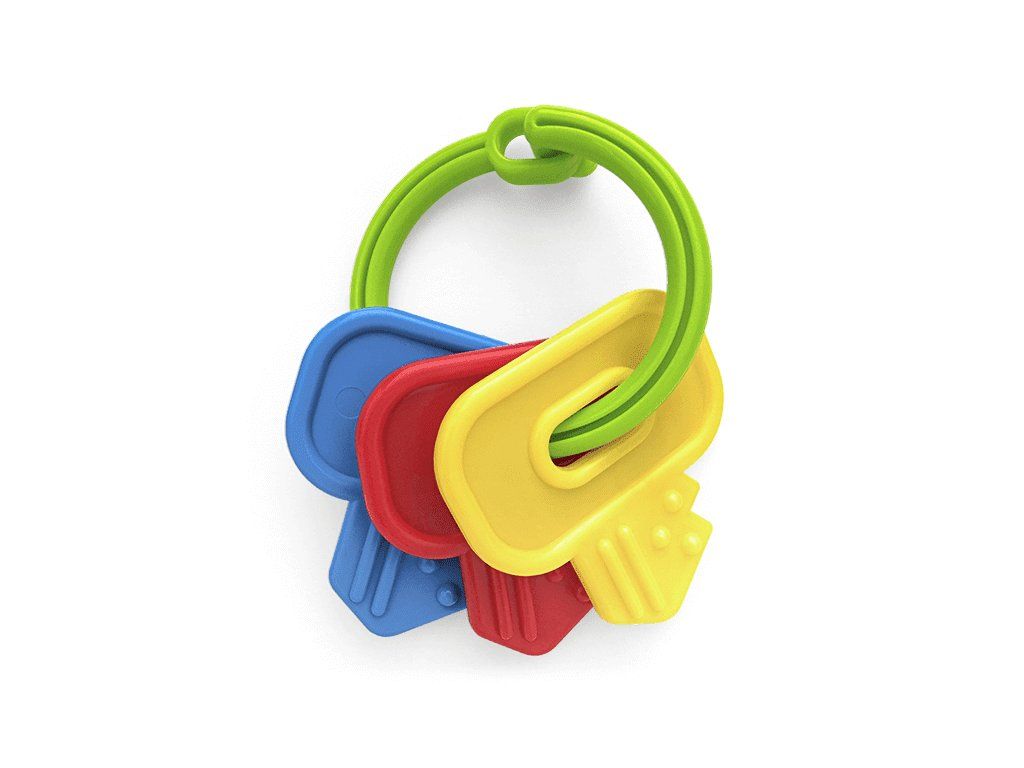 Barevné chrastící kousátko v různých provedeních s úchytem pro lepší držení, rozvíjí...